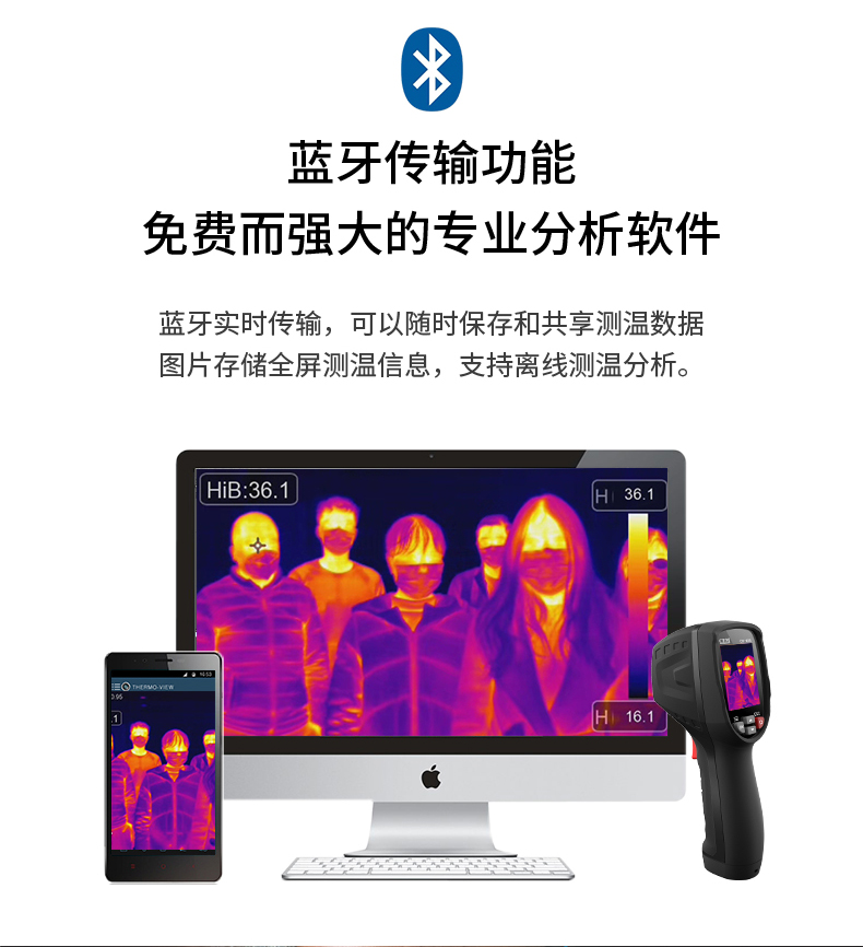 分辨率:80*80、圖像幀頻:50HZ、篩查測溫范圍:32-42℃、DT-8780YS外接10.1英寸PAD大屏,可實現(xiàn)多人同時測溫,AI人臉識別